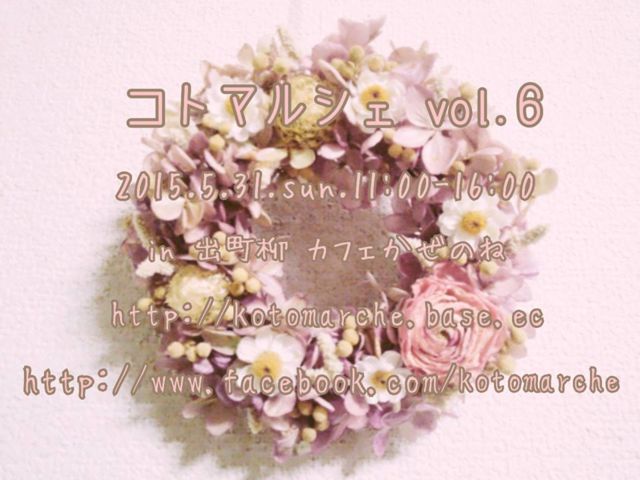 ¥³¥È¥Þ¥ë¥·¥§vol.6 µþÅÔ¡¦½ÐÄ®Ìø¡¡¤«¤¼¤Î¤Í 2015ǯ5·î31Æü(Æü)11:00¡Á16:00 http://kotomarche.base.ec/ http://www.facebook.com/kotomarche ¡ö¡ö¡ö¡ö¡ö µþÅÔ¡¦½ÐÄ®Ìø±Ø¤Î¤«¤¼¤Î¤Í¤µ¤ó¤Ë¡¢ ¤¿¤¯¤µ¤ó¤Î¼ê¤Å¤¯¤êºî²È¤µ¤ó¤¿¤Á¤¬½¸¤Þ¤ê¤Þ¤¹¡£ ²Ä°¦¤¤¡ª¤¤ì¤¤¡ª³Ú¤·¤¤¡ª ¤¢¤Ê¤¿¤À¤±¤ÎÁÇŨ¤Ê¥³¥È¤ò¸«ÉÕ¤±¤Ë¤ª±Û¤·²¼¤µ¤¤¡£ ¡ö¡ö¡ö¡ö¡ö KazuKiLn(¼êºî¤êÆ«´ï)¡¢CAFE Uchi(¥Ñ¥ó¥Ö¥í¡¼¥Á) No.623 m-smile(³¨¶ñ¤Î¥¹¥Æ¥ó¥É¥°¥é¥¹)¡¢kumako(»í½¸¤Î¥Ö¥í¡¼¥Á¡¢ÊԤ߾®Êª¡¢ÉÛ¾®Êª) ¤«¤ê¤ó¤È¤¦(ÌÚ¹©»¨²ß)¡¢¤¯¤Þ¤ä¤¯¤Þ¤³(¥ê¥Ð¥Æ¥£¥×¥ê¥ó¥È) shuha(