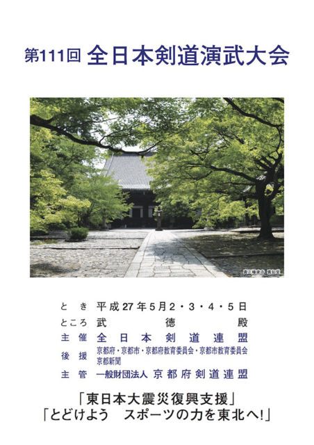 ¡ØÁ´ÆüËÜ·õÆ»±éÉðÂç²ñ¡¡¡ÙÄ̾Ρ§µþÅÔÂç²ñ Æü¡¡¡¡»þ¡¡Ê¿À®27ǯ5·î2Æü¡ÊÅÚ¡Ë ¡Á 5·î5Æü¡Ê²Ð¡Ë ¾ì¡¡¡¡½ê¡¡µþÅÔ»ÔÉðÆ»¥»¥ó¥¿¡¼Æâ¡¦ÉðÆÁÅ http://www.kendo.or.jp/competition/enbu/111th/ ¡ü5·î2Æü¤Î¹Ô»öÆüÄø¤«¤é¤ÎÈ´¿è¤Ç¤¹¡£ Â裱£±£±²ó¡¡Á´ÆüËÜ·õÆ»±éÉðÂç²ñ³«»Ï¼° 1 ¡¥³Æ¼ï¤Î·Á¡Ê·õÆ»¡¢¤Ê¤®¤Ê¤¿¡¢¤½¤Î¾¡Ë 1 ¡¥³Æ¼ï¤Î·Á¡Ê·õÆ»¡¢¤Ê¤®¤Ê¤¿¡¢¤½¤Î¾¡Ë 2 ¡¥¸ø³«±éÉð¡Ê¾óÆ»¡Ë 3 ¡¥¾óÆ»¡ÊÏ£»ÎÏ»ÃÊ¡ÁÈÏ»Î¡Ë 4 ¡¥¸ø³«±éÉð¡Êµï¹çÆ»¡Ë 5 ¡¥µï¹çÆ»¡ÊÏ£»ÎÏ»ÃÊ¡ÁÈÏ»Î¡Ë ¡ü5·î3Æü¤Ë¤Ï¡¢¾óƻȬÃÊ¿³ºº²ñ¤¬¤¢¤ê¤Þ¤¹¡£ http://www.kendo.or.jp/examina