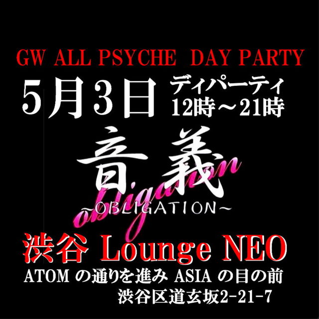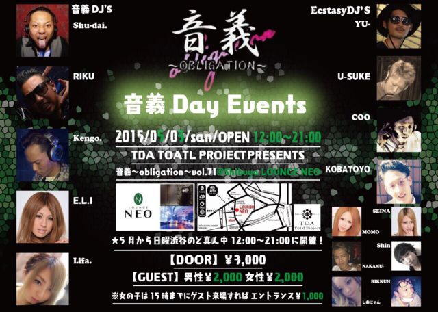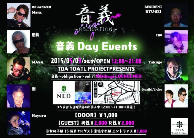 5·î3Æü(GW/SUN)½Âë LOUNGE NEO ²»µÁ¥Ç¥¤¥¤¥Ù¥ó¥È TDA TOATL PROJECT PRESENTS ²»µÁ¡Áobligation¡Ávol.71 12:00¡Á21:00¡¡ ¡ÚDOOR¡Û\3000 ¼õÉÕ¤ÇÃÄĹ¤Î¥²¥¹¥È¡ª¤È¸À¤Ã¤ÆÄº¤±¤ì¤Ð ²¼µ³ä°ú¤ÎÁ¶â¤Ë¤Ê¤ê¤Þ¤¹ Discount ÃËÀ\2000 ½÷À\2000 ¥Ï¥Ã¥Ô¡¼¥¢¥ï¡¼ÆÃŵ 15»þ¤Þ¤Ç¤ËÆþ¾ì¤Î½÷À¤Ï 1000±ß¤Ë¤Ê¤ê¤Þ¤¹ Guest DJ's ¡¦ÃÄĹ (K-HOLE/°Û¼¡¸µ/NOGA RECORDS) ¡¦MASA (Éٻλ³/Majestic Rec/M'sSTYLE) ¡¦Takugo a.k.a Paraleru (Éٻλ³/¥Ñ¥é¥ì¥ë¥ï¡¼¥ë¥É) ¡¦