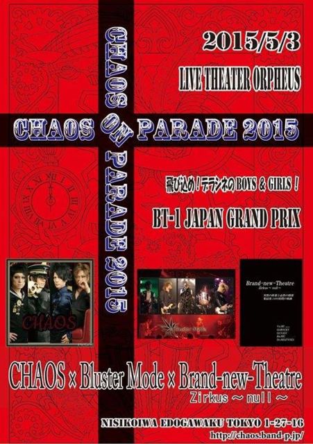 ´ÉÍý¿ÍÍÍ µ®½Å¤Ê¥¹¥Ú¡¼¥¹¤ª¼Ú¤êÃפ·¤Þ¤¹ BUCK-TICK respectband CHAOS ¤¬½é¤Î¼çºÅ¥Õ¥§¥¹¤ò¹Ô¤¤¤Þ¤¹ ¢÷CHAOS ON PARADE 2015¢÷ Èô¤Ó¹þ¤á¡ª¥Ç¥é¥·¥Í¤ÎBOYS ¡õ GIRLS¡ª BT-1 JAPAN GRAND PRIX OPEN 17:30 START 18:00 TICKET Á°Çä·ô 1500+1drink ÅöÆü·ô 2200+1drink ¾ì½ê LIVE THEATER ORPHEUS ÅìµþÅÔ¹¾¸ÍÀî¶èÀ¾¾®´ä1-27-16 ORPHEUS BLDG 2F TEL:03-5622-3520 »²²ÃArtist(½çÉÔÆ±) Band-new-Theatre Bluster Mode CHAOS Á°Çä¤ê¤Ç¤¹¤È700yen¤â¤ªÆÀ¤Ç¤´¤¶¤¤¤Þ¤¹¡ª ¿ô¤Ë¸Â¤ê¤¬¤´¤¶¤¤¤Þ¤¹¤Î¤Ç¤ªÁá