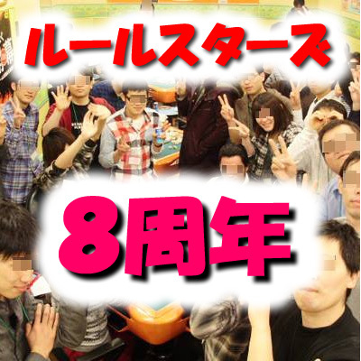 みんな大好きルールスターズの8周年!生誕祭 楽しいお祭りオフ会だ〜 オフ会ムービー こんな雰囲気で開催してま〜す https://www.youtube.com/watch?v=LjA9wJjwPFE 1部11:45集合 8周年記念麻雀大会 とにかく8が偉い!麻雀大会 同じ種類