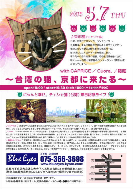 ¢£5·î7Æü(ÌÚ)¡¡¤Ë¤ã¤ó¤È¹¬¤»¡¢¥Á¥§¥·¥ãÇ¡ÊÂæÏÑ¡ËÍèÆüµÇ°¥é¥¤¥Ö¡ª ¡ÁÂæÏѤÎÇ¡¢µþÅÔ¤ËÍ褿¤ë¡Á open19:00/start 19:30/fee¡ï1000 (¡Ü1drink¡ï500) Live¡§¼Æ·´貓¡Ê¥Á¥§¥·¥ãÇ¡Ë/ È¢Äí / CAPRICE / Cuora. ¢ö¼Æ·´貓(¥Á¥§¥·¥ãÇ¡Ë ÂæÏÑ¡¦ÂæË̺߽»¤Î¥·¥ó¥¬¡¼¥½¥ó¥°¥é¥¤¥¿¡¼¡£Å·¿¿à¥Ì¡¡¢¤Þ¤ë¤ÇƸÏäÎÀ¤³¦¤Î¤è¤¦¤Ê¥¥ã¥é¥¯¥¿¡¼¡£Ç¤Î¤è¤¦¤Ê²Ä°¦¤µ¤È¸ÄÀ¤ò»ý¤ÄÇ·Ï¥¬¡¼¥ë¡£¤Û¤Î¤Ü¤Î¤·¤¿¥á¥í¥Ç¥£¡¼¤ò̵¼Ùµ¤¤Ë²Î¤¤¡¢ Ê¿¡¹ËÞ¡¹¤ÎÆü¡¹¤ò¿¼¤¯´Ñ»¡¡¢¤½¤ÎÀ¸³è´¶¤ò¶Ê¤Ë¹þ¤á¡¢Ä°¤¯¿Í¡¹¤Ï¼«Á³¤È¼Æ·´?¤Î¥ï¥ó¥À¡¼¥é¥ó¥É(Ì´Í·Àç¶)¤Ë¿»¤Ã¤Æ¤·¤Þ¤¦