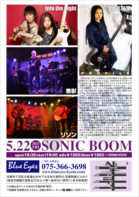 ¡ú5·î22Æü(¶â)¡¡SONIC BOOM open18:30/start19:00/adv¡ï1500 door¡ï1800(+1drink¡ï500) Live¡§Into the night / °ëÉôͧΤ / ¥ê¥½¥ó / °½Ã ¢öInto the night ¥®¥¿¡¼°ëÉô´²¼ù¤È¥Ù¡¼¥¹°ëÉôľ¼ù¤Î·»Äï¤òÃæ¿´¤Ë³èư¤¹¤ë¥×¥í¥°¥ì¡¦¥Õ¥å¡¼¥¸¥ç¥ó¥Ð¥ó¥É¡£ ÍĤ¤º¢¤«¤é¥Ô¥¢¥Î¡¢¥µ¥Ã¥¯¥¹¡¢¥É¥é¥à¤òÄ̤·¤ÆÍÍ¡¹¤Ê¥¸¥ã¥ó¥ë¤ò³Ø¤ó¤À·Ð¸³¤òÀ¸¤«¤·¤Æ¡¢ Into the night¤ÎÀ¤³¦¤ò·«¤ê¹¤²¤Æ¤¤¤Þ¤¹¡£·»Äï¤Ê¤é¤Ç¤Ï¤Î©¤Î¹ç¤Ã¤¿£Énto the night¤ÎÀ¤³¦¤ò¤ª³Ú¤·¤ß¤¯¤À¤µ¤¤¡£ http://arpeggio.studio-web.net/into_the_night/ ¢ö°ëÉôͧΤ ¥Ö¥é¥¸¥ë¤òÃæ¿´¤Ë¤Ê¤¼¤«