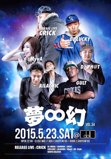 2015/5/23(SAT) Ì´¸¸vol34 22:00OPEN close mid DJ £Ð£È@T MIRAI SHOWGO LUCKY release LIVE CRICK LIVE GULT AILACHIC MyuA AA¡ÝStyle DANCE GALÁXIA ADV2000 1d door2500 1d