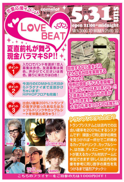 6/1 (·î) HAPPY MONDAY@camelot Í褿¿ÍÁ´°÷¤¬Happy¤Ë¤Ê¤ì¤ëHappy Monday¡ª ¥¨¥ó¥È¥é¥ó¥¹¤Ç DJ¥Ò¥¸¥ê¥Ã¥¯¥¹¤Î¥²¥¹¥È¤Ç¥Ò¥«¥ë¤È¸À¤¨¤Ð ÃËÀ1500±ß/2D¡¢½÷À1000±ß3D(Æâ1shot)¤Ç¤¹¡ª ¡Æþ¾ìÎÁÂçÉý°Â¡ª¥Õ¥é¥¤¥ä¡¼¡¢¥¤¥ó¥Ó¥Æ¡¼¥·¥ç¥ó»ý»² ¢500±ß¥É¥ê¥ó¥¯¥á¥Ë¥å¡¼Åо졪¥ê¡¼¥º¥Ê¥Ö¥ë¤ÊÎÁ¶â¤Ç¥É¥ê¥ó¥¯Get!! £ÈþÍÆ»Õ¤ÎÃ˽÷¤Ï´°Á´Æþ¾ì̵ÎÁ¡ª¡ª¥Ø¥¢¡¼¥·¥ç¡¼¤â³«ºÅ¡ª¡ª ¤¥¥ã¥á¥í¥Ã¥È¥ì¥¸¥Ç¥ó¥ÈDJ¤â»²À°ÂÄê´¶¤Î¤¢¤ë½µËö¤Î¥¥ã¥á¥í¥Ã¥È¥µ¥¦¥ó¥É¤¬·îÍˤÎÌ뤫¤éÀ¹¤ê¾å¤²¤Æ¤¤¤¤Þ¤¹¡ª ¥Ëè½µ·îÍˤ¬³«ºÅ¡ªÉÔÄê´ü¤Î·îÍ˵٤ߤ¬¤Ê¤¯