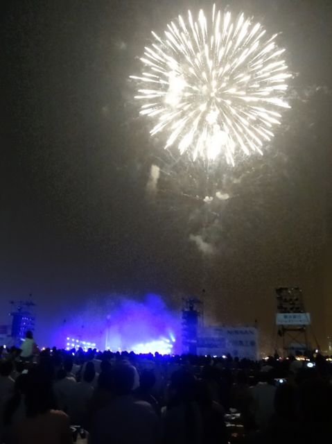 三日間に渡る横浜開港祭のメインの花火は、豪華絢爛な花火で横浜開港祭のフィナーレを飾る華やかなショー 幹事もそれ以外の方も、これだけを見に横浜まで来る方も大勢いらっしゃいます。 場所は臨海パークの海上で、時間は夜20時20分ころから始まり約30分間行われます。 30分間と言うことで通常の花火大会よりは短い時間ですが、約 6,000発が打ち上げられますので短いながらも濃い時間を過ごせますよ(^-^)v このショーの見所は、花火を盛り上げるレーザー光線と音楽です。 メインステージの後方から打上げられるため