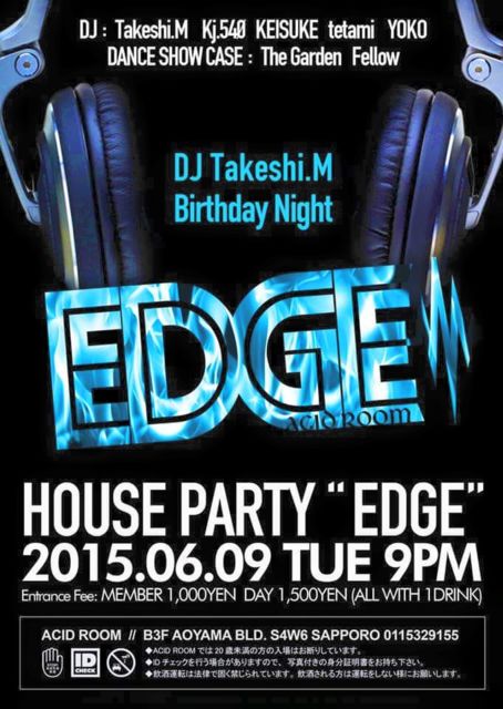 明日夜ACID ROOMにて、キレのあるHouse Music とDance Show CaseのあるParty『EDGE』開催いたします。