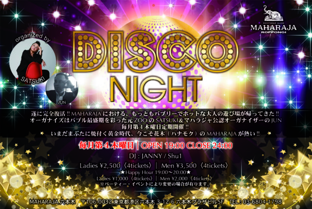 ¡ÚËè½µÌÚÍËÆü¤Ï¡ª¤ª¤Ê¤¸¤ßGroovy¤Î¥Ç¥£¥¹¥³¥Ê¥¤¥È¡Û 70ǯÂå¤ÎSOUL¥ß¥å¡¼¥¸¥Ã¥¯¤«¤éºÇ¿·¤ÎEDM¤Þ¤Ç¥ª¡¼¥ë¥Ò¥Ã¥È¥á¥É¥ì¡¼¡ªÍÙ¤ì¤ë¶ÊÀ¹¤êÂô»³¤Ç¤ªÂ£¤ê¤·¤Þ¤¹♬ ¡ÚOrganized By DISCO Groovy¡Û ¡Ú£Ä£Ê¡Û Hayasaka¡ÊDISCO Groovy¡Ë ¡Ú²»³Ú¡ÛALL GENRE ¡ÊSOUL¡¢Ãݤλҡ¢¥À¥ó¥¯¥é¡¢EURO¡¢HI-NRG¡¢TECHNO¡¢R&B¡¢EDM¡¢etc¡Ä¡Ë ¡Ú³«ºÅ»þ´Ö¡Û 19:00¡Á24:00 ¡ÚÎÁ¶â¡Û ÃËÀ¡§¡ï2,500/2Drinks¡Ü¥Ó¥å¥Ã¥Õ¥§ÉÕ ½÷À¡§¡ï2,000/2Drinks¡Ü¥Ó¥å¥Ã¥Õ¥§ÉÕ ¡Ê¥Ó¥å¥Ã¥Õ¥§¤Ï19»þ¤è¤ê¤´ÍѰդ·¤Þ¤¹¤¬¿ôÎ̸ÂÄê¤Ë¤Ä¤Ìµ¤¯¤Ê¤ê¼¡Â轪λ¤È¤Ê¤ê¤Þ¤¹¡Ë