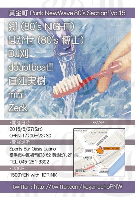²£ÉÍ¡¦²«¶âÄ®¤ËPunk&NewWave¥«¥ë¥Á¥ã¡¼¤¬ÃÂÀ¸¤·¤Þ¤¹¡£ ¡ù²«¶âÄ® Punk-NewWave 80's Section ! Vol.15 ¡¦³«ºÅÆü»þ¡¡ 2015/5/26(Sat)¡¡OPEN 17¡§00¡Ý22¡§30 ¡¦³«ºÅ¾ì½ê¡¡ Sports Bar Oasis Latino ... ¡¡¡¡¡¡¡¡¡¡¡¡²£ÉÍ»ÔÃæ¶è½é²»Ä®3-62 ²«¶â¥Ó¥ë2£Æ ¡¡¡¡¡¡¡¡¡¡¡¡TEL 045-251-3392 ¡¡Sports Bar Oasis Latino¥Û¡¼¥à¥Ú¡¼¥¸ ¡¡http://www.oasis-latino.com/ ¡¦DOOR 1500YEN with 1DRINK ¡¦DJ ¡ü¶¿ (80's NIGHT) ¡ü¤Ï¤«¤» (80's Çî»Î) ¡üDJ´¢ ¡üdoubtbeat!! ¡üľ¹¾¼Â¼ù¡§Ã»Çȥ饸¥ªÁÕ¼Ô ¡¡myspace: http://www.myspace