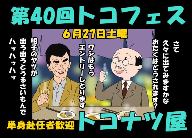 ¥È¥³¥Ê¥Ä²°¤Î¹±Îã¥é¥¤¥Ö¡ÖÂ裴£°²ó¥È¥³¥Õ¥§¥¹¡×¤ò£¶·î£²£·Æü¡ÊÅÚÍËÆü¡Ë¤Ë³«ºÅ¤¤¤¿¤·¤Þ¤¹¡£ ¡Ö¹Åç¤ÇÍ£°ì¡¢É¡±´µ¤Ê¬¤Ç½Ð±é¤Ç¤¤ë¥é¥¤¥Ö¡×¤ÈÄêɾ¤Î¤¢¤ë¥È¥³¥Õ¥§¥¹¡£ ¤³¤ÎÁÇŨ¤Ê¥é¥¤¥Ö¤Ë¡¢¤¢¤Ê¤¿¤â½Ð¤Æ¤ß¤Þ¤»¤ó¤«¡© ¥È¥³¥Õ¥§¥¹¤Ï°û¤ó¤ÇÁû¤¤¤Ç²Î¤Ã¤ÆÍ·¤Ö±ã²ñ·¿¥é¥¤¥Ö¤Ç¤¹¡£ ¥Õ¥©¡¼¥¯¡¢Íγڡ¢ÆüËܲÎÍØ¡¢¥¤¥ó¥¹¥È¤Ê¤É¥¸¥ã¥ó¥ëÉÔÌä¡£ ÏӤκ¹¤â´Ø·¸¤Ê¤¯¡¢½é¿´¼Ô¤«¤é¥Ù¥Æ¥é¥ó¤Þ¤Çï¤Ç¤â»²²Ã¤Ç¤¤Þ¤¹¡£ ¾ÜºÙ¤Ï²¼µ¤Î¤È¤ª¤ê¤Ç¤¹¡£ ³«ºÅÆü¡¡£¶·î£²£·Æü¡ÊÅÚÍËÆü¡Ë »þ¡¡´Ö¡¡£±£¸»þ£°£°Ê¬³«±é ÅÔ¹ç¤Ë¤è¤Ã¤Æ³«»Ï»þ´Ö¤òÊѹ¹¤¹¤ë¤³¤È¤¬¤¢¤ê¤Þ¤¹¤Î¤Ç¤´