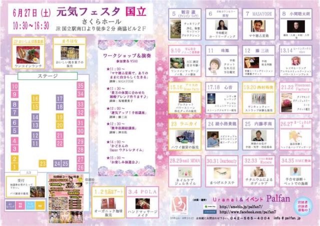 6月27日(土) 10:30〜16:30 「元気フェスタ国立」 国立駅南口 商協ビル2Fさくらホール 入場料無料