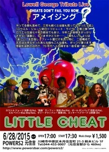 こんにちは。LITTLE CHEATのライブを告知させてください。 LOWELL GOERGE TRIBUTE LIVE CHEATS DON‘T FAIL YOU NOW アメイジング ? リトルフィートの楽曲をカヴァーするリトルチートというバンドです。 このフィートコミュにメンバー募集の書き込みがあったのが4年前の梅雨のころでした。。。。。 翌年の6月の最終日曜にロウエル命日トリビュートと銘打って初めてのライブを今回とおなじPOWERS2で行いました。 それから年