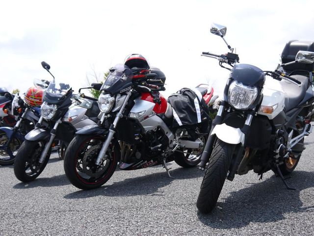 雑談トピでお話した通り、中部地区で夏のGSRお茶会『第1弾※』を開催したいと思います。 ※今年は、第2、3弾として、静岡県、奈良県での開催も検討中です! 昨年と同じく、7/19に愛知県豊田市豊田スタジアムで行われる、愛知オートバイ事業協同組合主催『バイクde夏祭り』でお茶会を行いたいと思います。 http://aj-aichi.net/HTML/summerfesta_2015.html 画像は昨年のもので、3台集まりました。 目的はGSRを並べてニヤニヤしながらGSR談義するのみ!(笑) ですので、走るのはちょっと。。。と言う方もお気軽に参加下さい。 一方