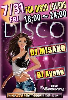 DISCO Groovy 7月の第5金曜日は!横浜のディスコラヴァーズに贈る一夜!オーディエンスのリクエストを織り交ぜつつオールジャンルでお届けします☆ 【DJ's】 MISAKO / Ayano 【音楽】 Dance Classics、Soul、Funk、R&B、Hip-Hop、EDM、etc... 【開催時間】 18:00〜24:00 【ハッピーアワー料金 / 18:00〜19:00にご来店の方】 男性:¥2,500/2Drinks+ビュッフェ付 女性:¥2,000/2Drinks+ビュッフェ付 【料金 / 19:00以降ご来店の方】 男性:¥3,000/2Drinks+ビュッフェ付 女性:¥2,500/2Drinks+ビュッフェ付 (ビュ