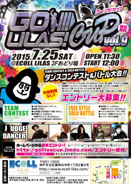 4·î13Æü¤ËǯÎðÀ©¸Â̵¤·¤Î¥Á¡¼¥à¥³¥ó¥Æ¥¹¥È¤È¥Õ¥ê¡¼¥¹¥¿¥¤¥ë¥½¥í¥Ð¥È¥ë¤òÌî³°¤Î¥·¥ç¥Ã¥Ô¥ó¥°¥â¡¼¥ë¤Ç¤ä¤ê¤Þ¤¹¡ª GO!LILAS!CUP(¥´¡¼¥ê¥é¥«¥Ã¥×)¡¡vol,9Æü»þ¡§£··î£²£µÆü¡ÊÆüÍËÆü¡Ë ¾ì½ê¡§¥¨¥³¡¼¥ë¥ê¥é¥·¥ç¥Ã¥Ô¥ó¥°¥»¥ó¥¿¡¼¡Ê¿À¸Í»ÔËÌ¶èÆ£¸¶ÂæÃæÄ®1ÃúÌÜ2ÈÖ2¹æ¡Ë £±£±:£³£°½¸¹ç¡¡£±£²¡§£°£°¥¹¥¿¡¼¥È ´ÑÍ÷.̵ÎÁ¡ª¡ª¡ª ¥¨¥ó¥È¥ê¡¼ÎÁ¶â ¥Ð¥È¥ë¡¢¥³¥ó¥Æ¥¹¥È¶¦1¿Í2000±ß ¥Ð¥È¥ë¤È¥³¥ó¥Æ¥¹¥È¤Î¥À¥Ö¥ë¥¨¥ó¥È¥ê¡¼¤Ï1¿Í3000±ß ¡Ô¥¸¥ã¥Ã¥¸¡Õ Ta-Bo-(Jack Of All Trade) HASSAN(Jacuzzi) HOSHITO (PSYCHO-TEX) ¡ÔDJ¡Õ SETO ¡ÔMC¡Õ ¥µ¥Ö¤Á¤ã¤ó