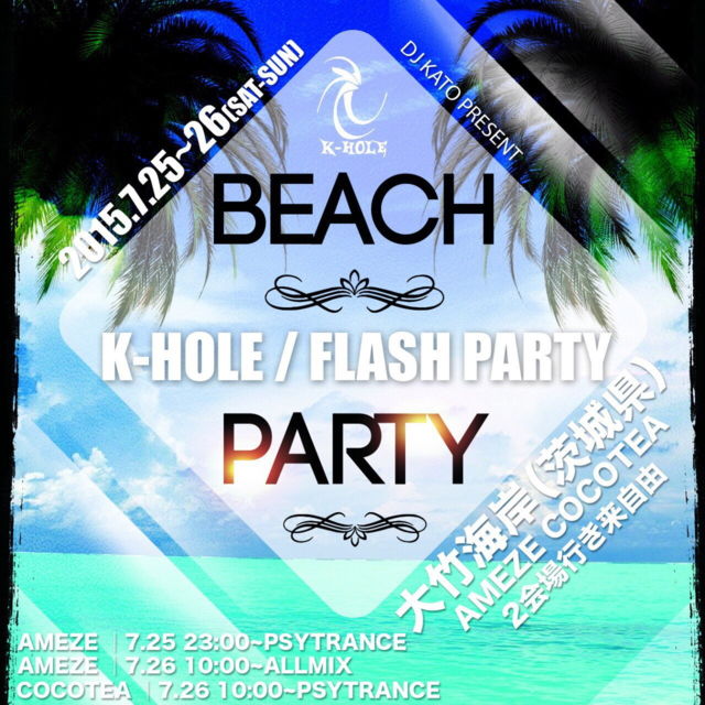 7/25 23:00¡Á7/26 21:00°ñ¾ëÂçÃݳ¤´ß AMEZE¡õCOCOTEA 2²ñ¾ì¹Ô¤Í輫ͳ DJ KATO PRESENTS K-HOLE¡ßFLASH PARTY BEACH PARTY 2015 ÃÄĹ¤Î¥²¥¹¥È¤È¸À¤Ã¤ÆÄº¤±¤ì¤Ð ·ã°Â 2000±ß¤Ë¤Ê¤ê¤Þ¤¹ EDM PSYCHE TRANCE ALL MIX ¡¦AMEZE 7/25 23:00¡ÁPSYCHE ¡¦AMEZE 7/26 10:00¡ÁALL MIX ¡¦COCOTEA 7/26 10:00¡ÁPSYCHE ÎÁ¶â¡ï3000 Discount ¡ï2000 ÃÄĹ¤Î¥²¥¹¥È¤È¸À¤Ã¤ÆÄº¤±¤ì¤Ð ¥Ç¥£¥¹¥«¥¦¥ó¥ÈÎÁ¶â¤Ë¤Ê¤ê¤Þ¤¹ ´ØÅì ALL STAR DJ's K-HOLE NOGA RECORDS Å·²¼Åý°ì