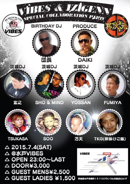 7·î4Æü(ÅÚ)¿å¸ÍVIBES¡¡VIBES¡ß°Û¼¡¸µ OPEN 23»þ¡ÁLAST ¡üENTRANCE ¡ü3000Yen ¼õÉÕ¤ÇÃÄĹ¤Î¥²¥¹¥È¤È¸À¤Ã¤ÆÄº¤±¤ì¤Ð ²¼µ¥Ç¥£¥¹¥«¥¦¥ó¥ÈÎÁ¶â¤Ë¤Ê¤ê¤Þ¤¹! Guest ÃËÀ2500Yen ½÷À1500Yen DANCHOU 50psy birthday Âè°ìÃÆ TIME TABLE 23:00¡ÁTKG(Íñ³Ý¤±¸æÈÓ) 24:00¡Á±øÅ· 24:40¡ÁFUMIYA 01:20¡ÁSOO 02:00¡ÁTSUKASA 02:40¡ÁYOSSAN 03:20¡ÁSHO&MIND 04:00¡ÁÃÄĹ 04:40¡Á¹¨Ç· 05:20¡ÁTKG(Íñ³Ý¤±¸æÈÓ)&±øÅ· ¢§ID 18ºÐ̤Ëþ¤ÎÊý¤Î¤´Æþ¾ì¤Ï¤ªÃǤꤷ¤Æ¤ª¤ê¤Þ¤¹¡£ ¥¨¥ó¥È¥é¥ó¥¹¤Ë¤Æ¿Èʬ¾Ú¤Î³Îǧ¤òÃפ·¤Þ¤¹¤Î¤Ç