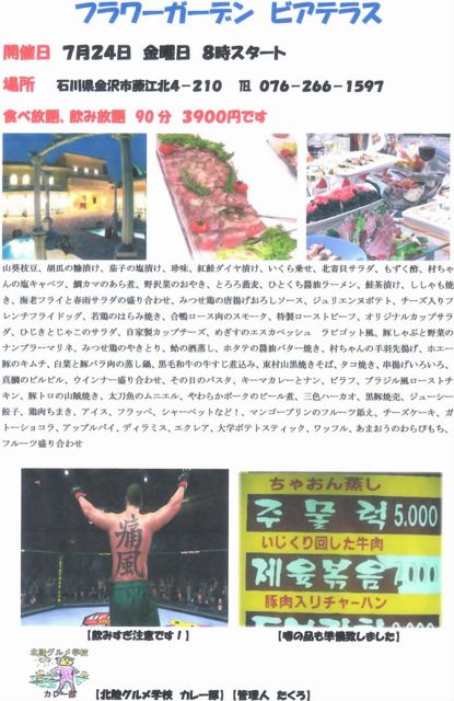 今年もやります! フラワーガーデンビアテラス 金額は3,900円 時間は8時から90分 飲み放題!食べ放題!暴れ放題! お気軽にご参加を♪