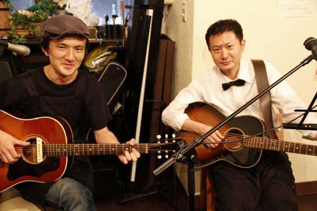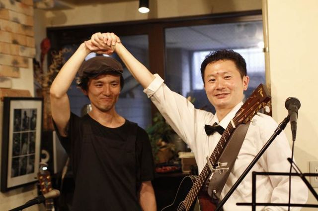 〜4年に一度の祭典「ラフィ文明五輪」開催!〜 ※写真はラ・フィエスタ店主松浦氏と 2007年7月にここ六角橋で創業開始した飲食店は珈琲文明だけではなく、 2丁目にある「ラ・フィエスタ」もそうでした。 以来店主同士仲良く、行き来する共通のお客様及び音楽仲間も多い。 そんな縁のある二つのお店で4年に一度オリンピックをやろうと思い立ち、 お互いのお店の4周年記念を第一回「ラフィ文明五輪」と銘打ち、 4年前に場所はラ・フィエスタで行われました。 あれから4年。今度は開催国、いや開催店をここ珈琲文明に移し、 7月12