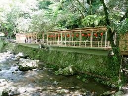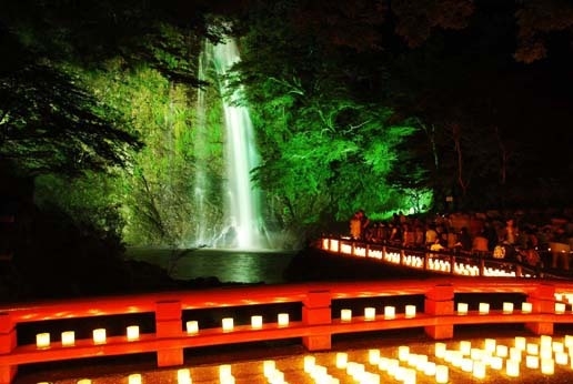 管理人さま、貴重なスペースをお借りします<m(__)m> 今回は自然の中、川のせせらぎを聴きながらの川床会席オフ会です 箕面のちょっとした名所散策と、自然の静けさの中に聴こえてくる川のせせらぎ、ヒグラシの声…。木漏れ日の中をゆっくり歩いていると時間を忘れ心が癒されます… 夕暮れ時から川床で涼を取りつつ会席料理に舌鼓♪ おしゃべりも楽しんでお腹も満たされた後は、ライトアップされた『箕面大滝』まで 夏の夜、マイナスイオン溢れる箕面大滝が幻想的に彩られています。 道は舗装されていて歩きやすいのでご