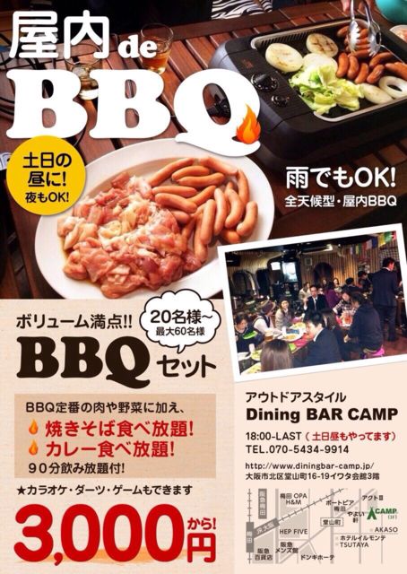 【8月9日】に、夏イベントの定番!「こだわりBBQイベント」を開催します!! 夏です!夏といえばBBQ♪ふつーのBBQじゃつまらないので、様々なBBQ料理をお出ししたこだわりBBQを開催します 会場は、JR環状線芦原橋駅すぐのおしゃれガーデンスペースを貸切♪屋根スペースもあるので日焼けの心配も大丈夫です 今回のイベントの特徴は・・・ 料理のこだわったBBQにします♪ 〜メニュー(予定)〜 ・お肉(牛、豚、鶏、ウインナー) ・夏野菜とムネ肉のコンソメ焼き ・鮭とキャベツときのこのバターホイル焼き ・