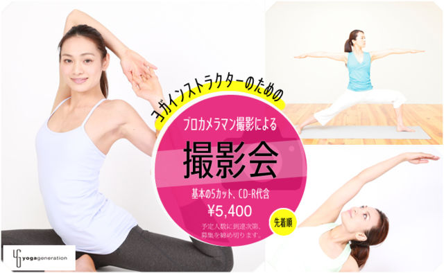 プロカメラマンによるヨガインストラクターの為のプロフィール写真撮影会 http://www.yoga-gene.com/workshop/15866.html#content ヨガインストラクターの皆さん! 今のプロフィール写真に、満足してますか? せっかく撮るなら、プロに撮ってもらいませんか? ヨガジェネレーションが主催するプロカメラマンによる ヨガインストラクターの為のプロフィール写真撮影会では 本格的な撮影セットでプロカメラマンによる撮影がたったの5400円! しかも30カット(5ポーズ)以上と枚数も豊富で、撮影してたデータは その場で全てCDRでお渡しし