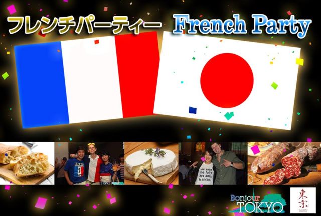 Bonjour TokyoとTokyo Salonは皆さんをFrenchy Partyにお招きします! フランス人や日本人、さらに2つの国を愛する友だちと集まって楽しく過ごしましょう! 友達を見つけたり、おしゃべりしたり、お酒を飲んだり…いちばん大切なのは、みんなで一緒に楽しむことです! コミュニケーションに不安を感じることはありません。フランス語、日本語、英語、あなたが話せる言葉でお話ししましょう!フランスのアペリティフにご参加ください!アペリティフはフランスの伝統的習慣で、夕食の前に、みんなで集まって一緒におしゃべりしたり、軽く食べたり