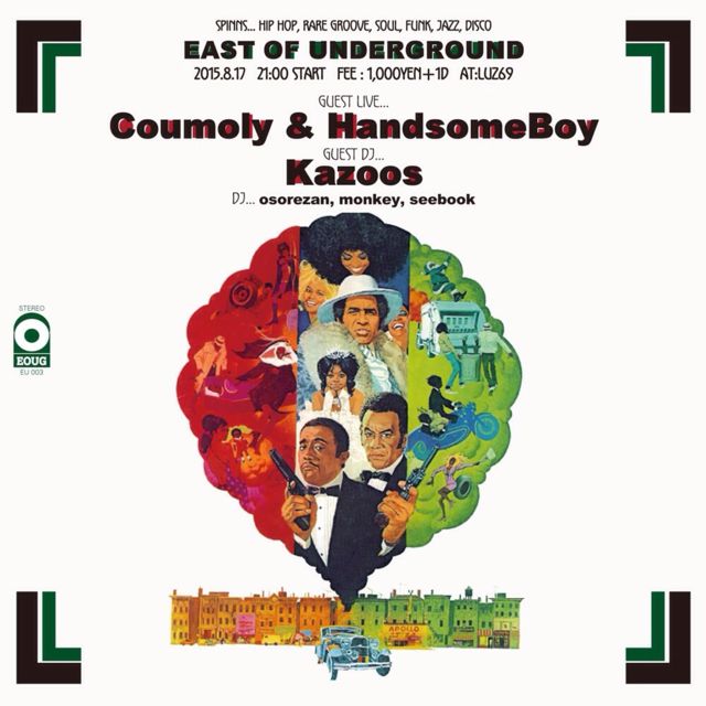 本日月曜日@LUZ69はミラクルマンデー!!! 鳥取で定期的に月曜ヒップホップパーティーを開催するコータaka 恐山 EAST OF UNDERGROUND !!! ゲストは説明不要のDOPEなHIPHOP先輩達 SUNLIFEという名のビッグパーティーを今年も成功に収めた HIPHOP先輩達を招いてEAST OF UNDERGROUND開催!! 12inchリリースしたてのCoumoly&HandsomeBoyにDJ Kazoos!!! 彼等の12inchも販売するのでゲトりに来て下さい!!! 2015/8/17(mon) 21:00 start fee:1000yen+1D @LUZ69 Guest live... Coumoly & HandsomeBoy (TOG) Guest dj...Kazoos (TOG)