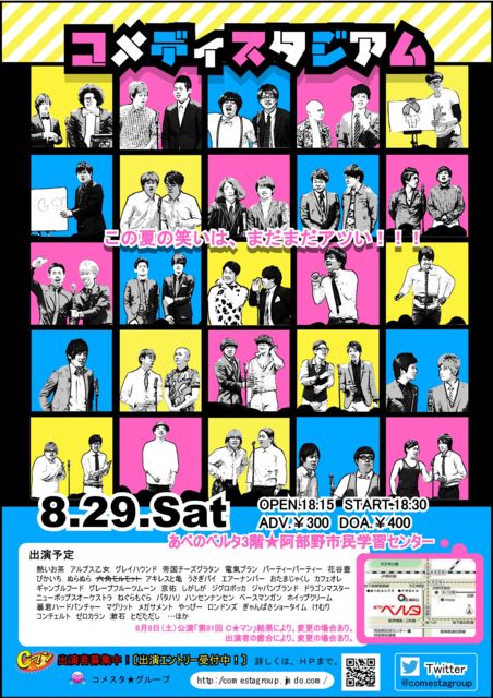 ¡¡¡ÖÂè175²ó ¥³¥á¥Ç¥£¥¹¥¿¥¸¥¢¥à(¥³¥á¥¹¥¿)¡× ¡¡¡¡http://comedystadium.jimdo.com/ ¡¡£²£°£±£µÇ¯¡¡£¸·î£²£¹ÆüÅÚÍËÆü ¡¡¡¡³«¾ì18¡§15¡¿³«±é18¡§30 ¡¡¡¡¤¢¤Ù¤Î¥Ù¥ë¥¿£³³¬¡ú°¤ÇÜÌî»Ô̱³Ø½¬¥»¥ó¥¿¡¼ ¡¡¡¡¡Ê¡Ö£Ñ¡Ç£ó¥â¡¼¥ë¡×²£¤Î·úʪ¤È¤Ê¤Ã¤Æ¤ª¤ê¤Þ¤¹¡£¡Ë ¡¡Á°Çä¤ê¥Á¥±¥Ã¥ÈͽÌó¤Ï¥³¥Á¥é¤«¤é ¡¡¡¡http://comedystadium.jimdo.com/ ¡¡£Í£Ã¡¿Ç®¤¤¤ªÃã ¡¡¥³¡¼¥Ê¡¼£Í£Ã¡¿¤Ô¤«¤¤¤Á ¡¡Á°Àâ¡¿¤Ì¤é¤Ì¤é ¡¡½Ð±é ¡¡¡¡Ç®¤¤¤ªÃã ¡¡¡¡¤ª¤Ã¤Ñ¤¤¥Þ¡¼¥±¥Ã¥È»³²¼¿®»Ê ¡¡¡¡Äë¹ñ¥Á¡¼¥º¥°¥é¥¿¥ó ¡¡