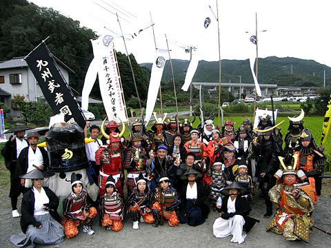 祭りや歴史がお好きな皆さん、武者行列に出演しませんか? 佐賀県三養基郡みやき町、JR長崎本線始発の鳥栖駅から4つ目の所に中原駅があります。 この駅から北に1kmほど行くと、背振山や九千部山の山塊の麓、綾部地区に風神で有名な綾部神社があります。その門前で古くから「ぼたもち」が名物として売られています。 「あやべさんのぼたもち」は近郊でも評判の銘菓で現在でも3軒の老舗が軒を連ねています。 実はこの「ぼたもち」には伝説があります。 今をさかのぼること824年前、すなわち平安時代の末期、初めて武家による社