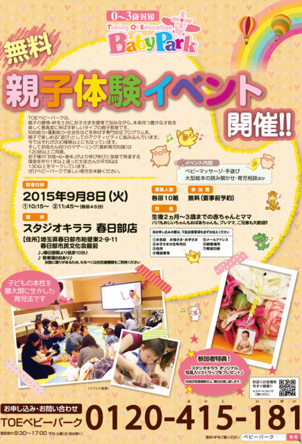 ¤ß¤Ê¤µ¤ó¤³¤ó¤Ë¤Á¤Ï ¥¹¥¿¥¸¥ª¥¥é¥é¤è¤ê¡¢¤Ù¥Ó¡¼¤Á¤ã¤ó¡õ¥Þ¥Þ¤Ë¼ª´ó¤ê¤Ê¤ªÃΤ餻¤Ç¤¹ 9·î8ÆüBaby Park¤µ¤ó¼çºÅ¤Î¿Æ»Ò¥¤¥Ù¥ó¥È¤ò³«ºÅ¤¤¤¿¤·¤Þ¤¹ ¹Ö»Õ¤ËÀìÌç¤ÎÀèÀ¸¤ò¤ª¾·¤¤·¤Æ¡¢¥Ù¥Ó¡¼¥Þ¥Ã¥µ¡¼¥¸¡¦¼êÍ·¤Ó °é»ùÁêÃ̤â¹Ô¤¤¤Þ¤¹ »²²ÃÈñ¡§ÌµÎÁ ³«ºÅÆüÄø¡§9·î8Æü²ÐÍËÆü ³«ºÅ»þ´Ö¡§ 10¡§15¡Á / 11¡§45¡Á £±Æü¡¡2²ó¡Ê³Æ²ó 10ÁȸÂÄê¡Ë ÆâÍÆ¡§¥Ù¥Ó¡¼¥Þ¥Ã¥µ¡¼¥¸Åù¡¡40ʬ¡¡/¡¡»£±Æ15ʬ¡¡¥È¡¼¥¿¥ë1»þ´ÖÄøÅÙ ¥¹¥¿¥¸¥ª¤Ë¤ÆÀÖ¤Á¤ã¤ó¡¡Or¡¡¥Þ¥Þ¤È¤Î2¥·¥ç¥Ã¥È¤ò»£±Æ¤¤¤¿¤·¤Þ¤¹
