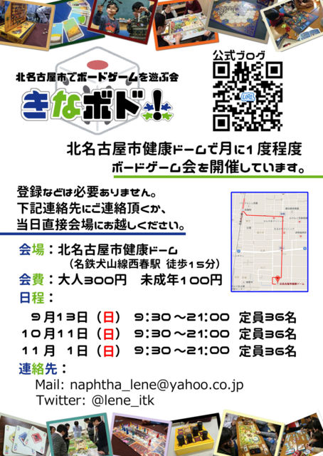 Æü»þ¡§2015ǯ9·î13Æü¡ÊÆü¡Ë¡¡9:30¡Á21:00 ¾ì½ê¡§ËÌ̾¸Å²°»Ô·ò¹¯¥É¡¼¥à¡¡£±£Æ¸¦½¤¼¼ Äê°÷¡§36̾ »²²ÃÈñ¡§Âç¿Í300±ß¡¡Ì¤À®Ç¯100±ß http://twipla.jp/events/160883 ËÌ̾¸Å²°»Ô¤Ç¥Ü¡¼¥É¥²¡¼¥à¤òÍ·¤Ö²ñ¤ò³«ºÅ¤·¤Þ¤¹¡£ ¥É¥¤¥Ä¥²¡¼¥à¤È¸Æ¤Ð¤ì¤ë¡¢±¿¤äÀïάÀ¡¢¥³¥ß¥å¥Ë¥±¡¼¥·¥ç¥ó¤Ê¤É¤ò¼çÂΤȤ¹¤ë¥Ð¥é¥¨¥Æ¥£¤ËÉÙ¤ó¤À¥²¡¼¥à¤ÇÍ·¤ó¤Ç¤¤¤Þ¤¹¡£ ¥ï¥¤¥ï¥¤¤ÈÁû¤²¤ë³Ú¤·¤¤¥²¡¼¥à¤«¤é¡¢£²»þ´Ö°Ê¾å¤«¤«¤ëĹ»þ´Ö¥²¡¼¥à¤Þ¤Ç¿§¡¹ÍѰդ·¤Æ¤¤¤Þ¤¹¡£ ¾®³ØÀ¸¤«¤éÂç¿Í¤Þ¤Ç¡¢·Ð¸³¼Ô¤ÎÊý¤â½é¿´¼Ô¤ÎÊý¤âʬ¤±³Ö¤Æ¤Ê¤¯¡¢¤É¤Ê¤¿¤Ç¤â»²²Ã¤·¤ÆÄº¤±¤Þ¤¹¡£ ½éÂÐ