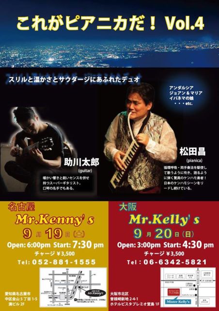 ¤³¤ì¤¬¥Ô¥¢¥Ë¥«¤À¡ªVol.4 ¥Ö¥é¥¸¥ê¥¢¥ó¡¦¥Ô¥¢¥Ë¥«¤È¥Ö¥é¥¸¥ê¥¢¥ó¡¦¥®¥¿¡¼¤ÎÁø¶ø ½Ð±é¡¿¾¾Åľ»¡Ê¥Ô¥¢¥Ë¥«¡Ë¡¡½õÀîÂÀϺ¡Ê¥®¥¿¡¼) »þ´Ö¡¿9·î19Æü¡ÊÅÚ¡ËOpen¡§6:00pm¡¡Start¡§7:30pm ²ñ¾ì¡¿Mr.Kenny¡Çs¡ÊMr.¥±¥Ë¡¼¥º¡Ë ¡¡¡¡¡¡Ì¾¸Å²°»ÔÃæ¶è¶â»³5ÃúÌÜ1-5¡¡Ëþ¥Ó¥ë2F ¡¡¡¡¡¡http://www.mrkennys.com/access/ ÎÁ¶â¡¿¡ï3,500 ¤ªÌ䤤¹ç¤ï¤»¡¦¤´Í½Ìó¡¿Mr.Kenny¡Çs¡¡TEL : 052-881-1555 ¡¡¡¡Mail: mr.kenny@chic.ocn.ne.jp