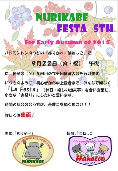 ½©¤Î¥×¥ÁÃÄÂÎÀï¡ÖNURIKABE FESTA 5th¡×¤ÎÊ罸¤ò³«»Ï¤·¤Þ¤¹¡£ ³§ÍÍ¡¢¤´ÅԹ礬¹ç¤¨¤Ð¡¢À§Èó¤´»²²Ã¤¯¤À¤µ¤¤¡ª¡ª ¤¤¤Ä¤âÄ̤ê¤ÎÊ罸Í×ÎΤǤ¹¡ª ¡ÚÆüÄø¡Û£¹·î£²£²Æü¡¡²ÐÍËÆü¡Ê½ËÆü¡Ë¡¡£±£²¡§£°£°¡Á£²£°¡§£°£°º¢¤Þ¤Ç ¡¡¡Ê²¿¤ÈìÔÂô£³¥³¥Þ£¹»þ´Ö¡ª¡Ë ¡Ú¾ì½ê¡Û̧ÌÌÂ裲Âΰé´Û¡Ȩ̂ÌÌ»ÔÂ裲Áí¹ç±¿Æ°¾ìÆâ¡Ë ¡ÚÍ×¹à¡Û ¡¡´ðËÜŪ¤Ë»öÁ°ÅÐÏ¿À©¡¡¡Ê²¾ÄùÀÚ¡¡£¹·î£¶Æü¡ÊÆü¡Ë¤Þ¤Ç¡Ë ¡¡¡¡¡¡¡¡¡¡¡¡ºÇÂçÊ罸¿Í¿ô¡¡£´£°¿Í Àµ¼°ÅÐÏ¿ÊýË¡¡Ë¡Ö¤Ì¤ê¤«¤Ù¡×·Ç¼¨ÈĤÎÅÐÏ¿¥¹¥ì¥Ã¥É¤Ø¤Î½ñ¤­¹þ¤ß?¡¢ ¡¡¡¡¡¡¡¡¡¡¡¡¡¡¡¡¤¢¤ë¤¤¤Ï£í£é£ø£é¥¤¥Ù¥ó¥È¤Ø¤Î½ñ¤­¹þ¤ß ¡¡¡¡¡¡