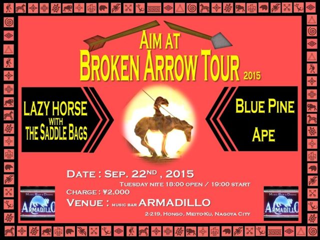 ツアー最終日は、初めての名古屋で。 チャージ:2000円 出演:LAZY HORSE with the Saddle Bags / Ape / Blue Pine