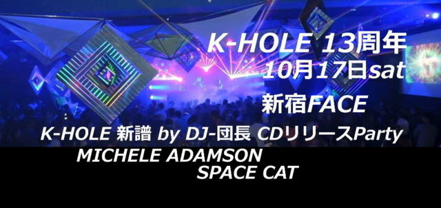 輪10月17日(土)新宿FACE K-HOLE13周年 ぴかぴか(新しい)NEW ALBUM CD Release Party 輪K-HOLE Vol.5 Mixed by DJ団長 輪FUJISAN Mixed by DJ MASA ぴかぴか(新しい)SPECIAL GUEST LIVE ARTIST☆ ぴかぴか(新しい)MICHELE ADAMSON (FINE PLAY/UK) ぴかぴか(新しい)SPACE CAT (H2O/FINE PLAY/ISR) 輪限定前売り券 4500円発売開始 プロモーションCD付き 送料無料で対応します。 DJ-団長まで 連絡ください。 お陰様でK-HOLEも 13周年を迎える事が出来ました。 つきましては 10月17日(土)に新宿FACEにて 1000人規模のAnniversary Partyを開催します。
