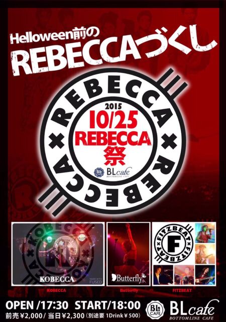 名古屋でレベッカトリビュートバンド「FITZBEAT]で活動中のGitarのKenです。 名古屋でレベッカのコピバンばかり集めたイベント REBECCA祭り@名古屋今池BL Cafeを開催するので 宣伝させてください。 REBECCA祭り at Nagoya 出演バンドすべてレベッカ ばっかり・・・・・です。 今年再結成の本家REBECCA 今も衰えることを知らないレベッカ愛を 心行くまでご堪能ください 名古屋今池BottomLine 1FのBL CAFEにて 名古屋市千種区今池4-7-11 TEL:052-741-1620 前売2000円/当日2300円 Drink代別途500円 PM5:30 OPEN / PM6:00 Star
