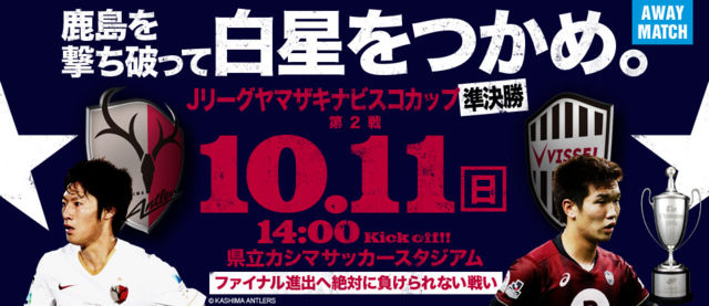 15年 ヤマザキナビスコカップ準決勝 第1戦 ヴィッセル神戸 対 鹿島アントラーズ ○会場/アクセス 県立カシマサッカースタジアム アクセス ◦JR鹿島線「鹿島神宮」駅よりスタジアム行バスで15分(開催時のみ運行) ◦鹿島臨海鉄道「鹿島サッカースタジアム」駅より徒歩5分(開催時のみ停車) ◦東京駅八重洲南口より高速バス「鹿島神宮」行で120分/1,780円 ※ホームゲーム開催日、キックオフ6〜2時間前までの間、鹿島神宮行はすべて「カシマスタジアム」まで運行(鹿島セントラルホテル経由) ◦[車利