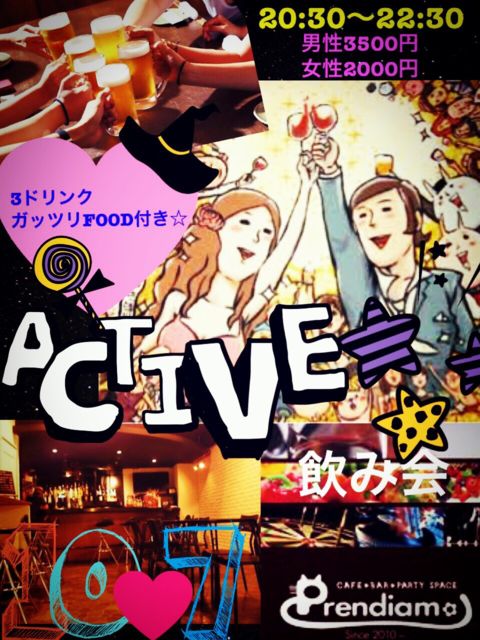 本格的に秋がきましたわーい(嬉しい顔) とゆーわけで、アクティブな人、そうなりたい人集合!! ★アクティブ飲み会★ 旅行好き スポーツ好き アウトドア好き 人が好き 特に定義は無いです!! アクティブで楽しい人、そうなりたい人で集まって飲み会しましょう( ´ ▽ ` ) ◆日時 10月7日 20:30〜 ◆場所 プレンディアモ 住所 愛知県名古屋市中区栄4丁目12−20 http://s.tabelog.com/aichi/A2301/A230103/23039118/ ◆料金(フードレストランドリンクバー付き) 男性 3500円 女性 2000円 参加希望の方は幹事までメ