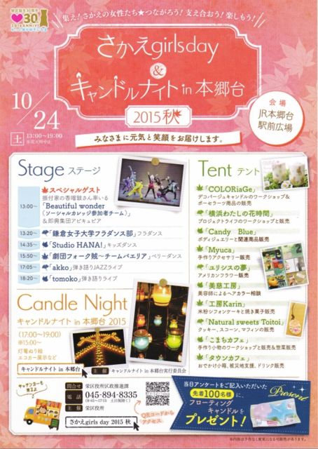 Ëܶ¿Â楥ã¥ó¥É¥ë¥Ê¥¤¥È º¬´ßÀþËܶ¿Âæ±ØÁ°¹¾ì¤ÇËèǯ¹Ô¤ï¤ì¤ëÏ·ÊÞ¥¥ã¥ó¥É¥ë¥¤¥Ù¥ó¥È ¡£ ¢£Æü»þ¡§2015ǯ10·î24Æü¡ÊÅÚ¡Ë ¡¡¡¡¡¡¡¡13»þ¡Ê¥¥ã¥ó¥É¥ëÅÀÅô¤Ï17»þ¤«¤é19»þ¡Ë ¢£¾ì½ê¡§JRµþÉÍÅìËÌÀþ¡¡Ëܶ¿Âæ±ØÁ°¹¾ì¾ ¢¨ ±É¶è¼çºÅ¤Î¡Ö¥¬¡¼¥ë¥º¥Ç¡¼¡×¤Î¥¤¥Ù¥ó¥È¤ÈƱ»þ³«ºÅ¤Ç¤¹¡£ ¡Ôº£²ó¤Î¥Æ¡¼¥Þ¤Ï¡Ö´èÄ¥¤ë½÷À¡ª¡×¡Õ ½÷À»ëÅÀ¤ËΩ¤Ã¤¿Å¹ÊÞ¤¬¤¿¤¯¤µ¤ó½Ðʤ·¤Æ¤¤¤Þ¤¹¡£ ¡¡¡û¥Ç¥³¥Ñ¡¼¥¸¥å¥¥ã¥ó¥É¥ë¤Î¥ï¡¼¥¯¥·¥ç¥Ã¥×¡õ¥Ý¡¼¥»¥é¡¼¥ÄÈÎÇä ¡¡¡û²Ö»þ´Ö¡¢¥×¥í¥¸¥§¥¯¥È¥é¥¤¥Õ¤Î¥ï¡¼¥¯¥·¥ç¥Ã¥× ¡¡¡û¥Ü¥Ç¥£¥¸¥å¥¨¥ê¡¼¤ÎÈÎÇä ¡¡¡û¼êºî¤ê¥¢¥¯¥»¥µ¥ê¡¼¡¦¾®Êª
