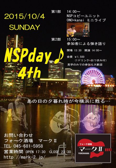 ´ÉÍý¿ÍÍÍ¡¡¥¤¥Ù¥ó¥È¤Î¹ðÃΤò¤µ¤»¤ÆÄº¤¤Þ¤¹¢ö Âè4²óNSP¥Ç¡¼³«ºÅ¤Î¤ªÃΤ餻¤Ç¤¹¡£ ¡úÆü»þ¡§2015ǯ10·î4Æü¡ÊÆü¡Ë ¡ú¾ì½ê¡§²£ÉÍ¥Þ¡¼¥¯¶¡¡http://mark-2.jp/ ¡ú»þ´Ö¡§13:30³«¾ì¡¡14:00³«±é¡¡19:30½ªÎ»Í½Äê ¡ú²ñÈñ¡§1500±ß¡Ê¥ï¥ó¥É¥ê¥ó¥¯¡¢¤ª¤Ä¤Þ¤ßÉÕ¤¡Ë ¡¡¡¡¡¡¡¡Äɲåɥê¥ó¥¯¤Ï500±ß¥¥ã¥Ã¥·¥å¥ª¥ó ¡úÊ罸¿Í¿ô¡§25̾ ¡úÆâÍÆ ¡¡Â裱Éô¡¡14:00¡Á¡¡NSP¥³¥Ô¡¼¥æ¥Ë¥Ã¥È¡ÖONO¡Ükanai¡×¤Ë¤è¤ë¥ß¥Ë¥é¥¤¥Ö ¡¡ Â裲Éô¡¡15:00¡Á¡¡»²²Ã¼Ô¤Ë¤è¤ëÃÆ¤¸ì¤ê ¡úÃí°Õ»ö¹à ¡öÂ裲Éô¤Ï°ì¿Í¡Ê¤Þ¤¿¤Ï1ÁÈ¡Ë2¶Ê¤òͽÄꤷ¤Æ¤¤¤Þ¤¹¡£