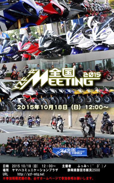 ¡ª¡ª¡ªºÇ½ÅÍ×Ãí°Õ»ö¹à¡ª¡ª¡ª ¡¦Á´¹ñ¥ß¡¼¥Æ¥£¥ó¥°¡¡¥µ¥¤¥È http://yzf-mtg.net/15/ ¡¦¿Í¿ôÇİ®¤Î¤¿¤á¤Ëɬ¤º»²²ÃɽÌÀ¤ò¤ª´ê¤¤¤·¤Þ¤¹¡ª¡ª¡ª ¡¦»²²ÃɽÌÀ¤Ïɬ¤º1¥«½ê¤Î¤ß¤Ç¤ª´ê¤¤¤·¤Þ¤¹¡£½ÅÊ£¤Ç»²²ÃɽÌÀ¤µ¤ì¤Þ¤¹¤È¡¢Àµ³Î¤Ê¿Í¿ô¤¬Çİ®¤Ç¤¤Ê¤¤¾ì¹ç¤¬¤¢¤ê¤Þ¤¹¡£ ¡¦²ñ¾ìÉßÃÏÆâ¤Ç¡¢¥Ø¥ë¥á¥Ã¥È¤Ê¤·¤Ç¤Î¥ª¡¼¥È¥Ð¥¤¤Î±¿Å¾¤Ï¸·¶Ø¤È¤µ¤»¤Æ¤¤¤¿¤À¤¤¤Æ¤Þ¤¹¡£ ¡¦Æ±Æü¡¢YZF-RÁ´¹ñMTG²ñ¾ì¤ÎÁ°¤Ë¤Æ¥¸¥å¥Ó¥íÈØÅĤΥۡ¼¥à¥²¡¼¥à¤¬¤¢¤ê¤Þ¤¹¡£Ä̹Ե¬À©¤¬¹Ô¤ï¤ì¤Þ¤¹¤¬¡¢¥³¥ß¥×¥é¤ËÍ褿¤È¸À¤Ã¤ÆÄº¤±¤ì¤ÐÄ̹Ԥ¬²Äǽ¤Ç¤¹¡£ ¥¤¥Ù¥ó¥È¤Ï14»þ30ʬÊÄËë¡¢Âà¾ì»þ¤Ï15»þ¤Þ¤Ç¤Ë
