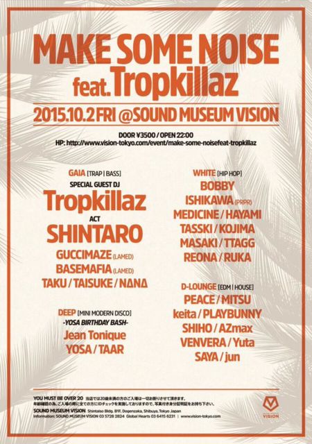 DJs: Miwaku-no-Kunio, Setsuko, James, Adrian, Fidel, Chicchi