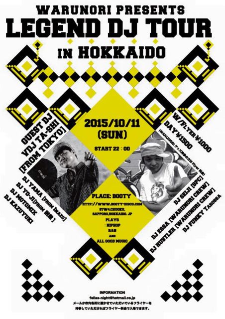 10/11(日)は、札幌BOOTYにてDJ TA-SHI氏がスピンします!