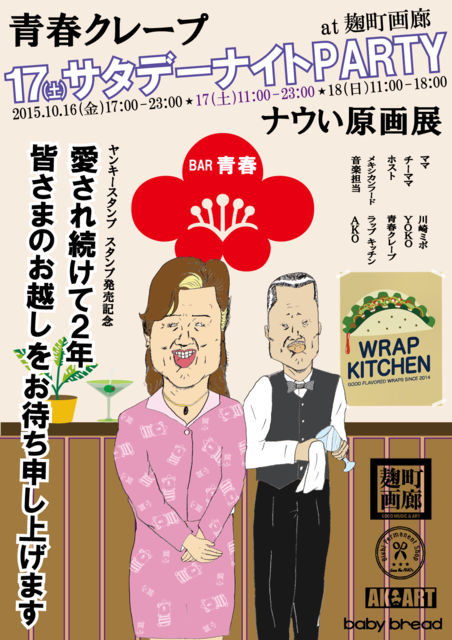 ÀĽե¯¥ì¡¼¥×¡¡-¥Ê¥¦¤¤¸¶²èŸ- 2015ǯ10·î16/17/18Æü Æþ¾ì̵ÎÁ 16Æü¡Ê¶â¡Ë17:00-23:00 FOOD:¡ÊÀÐÀî:ÎØÅç¡¡Baby Bread Presents ÀĽդ¢¤ó¤Ñ¤ó) SOUND CHOICE:AKO ÀĽե¯¥ì¡¼¥×¡¡LIVE PAINT¡¡¤Ü¤Á¤Ü¤Á¥¹¥¿¡¼¥È 17Æü¡ÊÅÚ¡Ë11:00-23:00¡¡¡Ú¥µ¥¿¥Ç¡¼¥Ê¥¤¥ÈPARTY¡¡BarÀÄ½Õ¡Û FOOD:¥Æ¥¯¥¹¡¦¥á¥¯¥¹ÎÁÍý¡¡Wrap Kitchen¡Ê¥é¥Ã¥× ¥¥Ã¥Á¥ó¡Ë ¥Þ¥Þ¡§Àîºê¥ß¥Ý ¥Á¡¼¥Þ¥Þ¡§YOKO ¥Û¥¹¥È:ÀĽե¯¥ì¡¼¥× SOUND CHOICE:AKO 18Æü¡ÊÆü¡Ë11:00-18:00¡¡¡ÊºÇ½ªÆü¡Ë FOOD:¡ÊKoumeBooks Presents ÀĽեݥåץ³¡¼¥ó¡Ë SOUND CHOICE:AKO ÀĽÕ