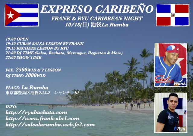 ドミニカのバチャータとメレンゲそしてキューバのサルサとレゲトン中心の選曲でカリブの雰囲気を味わえましょう!