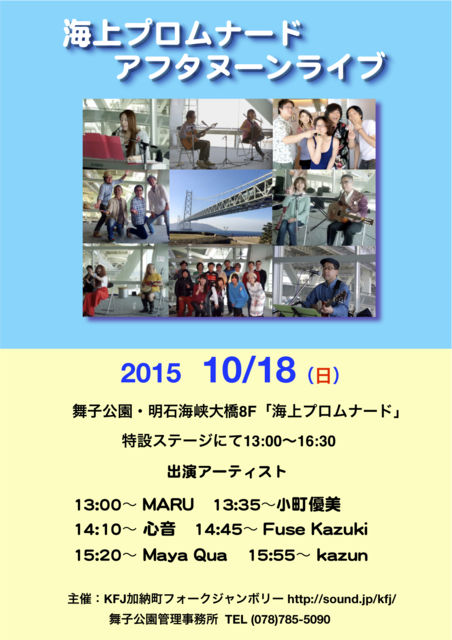 10·î18Æü¡ÊÆü¡ËÉñ»Ò¸ø±à ³¤¾å¥×¥í¥à¥Ê¡¼¥É¥é¥¤¥Ö Ëè·îÂè»°ÆüÍËÆü KFJ²ÃǼĮ¥Õ¥©¡¼¥¯¥¸¥ã¥ó¥Ü¥ê¡¼ http://sound.jp/kfj/ ¼çºÅ¤Î Äê´ü¥é¥¤¥Ö¥¤¥Ù¥ó¥È ¡£ÌÀÀÐøϩ³¤¶®Âç¶¶8F ³¤¾å¥×¥í¥à¥Ê¡¼¥É http://www.hyogo-park.or.jp/maiko/contents/sisetsu/area_prom.html ÆÃÀߥ¹¥Æ¡¼¥¸¤Ë¤Æ 13:00¡Á16:30 ̵ÎÁ¡Ê⤷¡¢Æþ´ÛÎÁ 300±ß¤¬É¬ÍפǤ¹¡Ë 13:00¡Á MARU http://www.kcc.zaq.ne.jp/kazun/Green_rabbits.html 13:35¡Á ¾®Ä® Í¥Èþ http://yumikomachi.wix.com/yumi-komachi 14:10¡Á ¿´²»¡Ê¥Ë¸Õ±éÁÕ¡Ë 14:45¡Á Fuse Kazuaki https://w