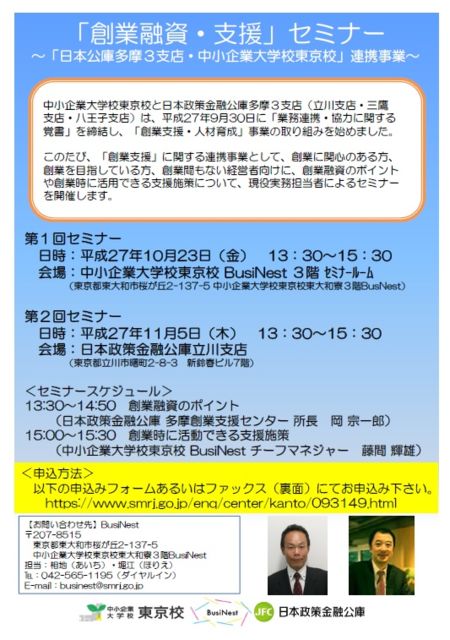 Ãæ¾®´ë¶ÈÂç³Ø¹»Åìµþ¹»¤ÈÆüËÜÀ¯ºö¶âÍ»¸ø¸Ë¿Ëࣳ»ÙŹ¡ÊΩÀî»ÙŹ¡¦»°Âë»ÙŹ¡¦È¬²¦»Ò»ÙŹ¡Ë¤Ï¡¢Ê¿À®27ǯ9·î30Æü¤Ë¡Ö¶È̳Ϣ·È¡¦¶¨ÎϤ˴ؤ¹¤ë³Ð½ñ¡×¤òÄù·ë¤·¡¢¡ÖÁ϶Ȼٱ硦¿Íºà°éÀ®¡×»ö¶È¤Î¼è¤êÁȤߤò»Ï¤á¤Þ¤·¤¿¡£ ¤³¤Î¤¿¤Ó¡¢¡ÖÁ϶Ȼٱç¡×¤Ë´Ø¤¹¤ëÏ¢·È»ö¶È¤È¤·¤Æ¡¢Á϶Ȥ˴ؿ´¤Î¤¢¤ëÊý¡¢Á϶ȤòÌܻؤ·¤Æ¤¤¤ëÊý¡¢Á϶ȴ֤â¤Ê¤¤·Ð±Ä¼Ô¸þ¤±¤Ë¡¢Á϶ÈÍ»»ñ¤Î¥Ý¥¤¥ó¥È¤äÁ϶Ȼþ¤Ë³èÍѤǤ¤ë»Ù±ç»Üºö¤Ë¤Ä¤¤¤Æ¡¢¸½Ìò¼Â̳ôÅö¼Ô¤Ë¤è¤ë¥»¥ß¥Ê¡¼¤ò³«ºÅ¤·¤Þ¤¹¡£ ¡¡http://businest.smrj.go.jp/?p=1979 ¢¡³«ºÅÆü»þ ¡¡¡ÌÂè1²ó¥»¥ß¥Ê¡¼¡Í ¡¡¡¡10·î23Æü¡Ê¶â¡Ë13»þ