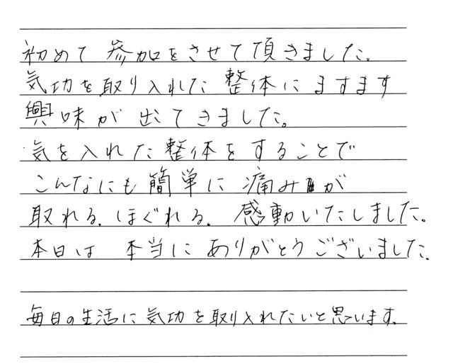 【だれでも持っている気の力を発揮する最も実用的な方法です】 気功は特別な才能やつらく長い訓練が無くてもマスターできるテクニックです。 とくに、体の経絡の流れを整えることで簡単に体のゆがみやコリを解決して、しかも、揉まないので筋肉を痛めることもない理想的な施術方法&健康法です。 施術者として、自分の体のケアとして、他とは違う本格的な気功整体の技術を格安で提供しています。 【東洋医学の根本としての気】 当気功整体の講座は4レッスンで構成され、気の流れを整える2種類の技法と、邪気を取り除く寫法、