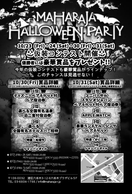10/30(¶â)¡ØHALLOWEEN PARTY¡Ù 10/31(ÅÚ)¡ØHALLOWEEN PARTY¡Ù 11/1(Æü)¡ØVACATION / MAGICAL RAVE HYPER¡Ù 11/2(·î)¡ØGLOBAL MIX¡Ù 11/3(²ÐŽ¥½Ë)¡ØDISCO90¡Çs¡Á¥Ñ¥é¡ù¥Ñ¥é¡Á¡Ù 11/4(¿å)¡ØMAHARAJA NIGHT¡Ù 11/5(ÌÚ)¡ØDX DISCO PARTY¡Ù ¢ã11·î20Æü¡Á22Æü¢ä 5¼þǯ¥Ñ¡¼¥Æ¥£³«ºÅ¡ª¡ª GUEST¤Ë¥Þ¡¼¥¯¥Ñ¥ó¥µ¡¼¡¦KONAN¡¦¥¯¥Þ¥à¥·¡¦¥Ô¥¹¥¿¥Á¥ª¡¦Ê¿Ìî¥Î¥é¡¦Áḫͥ¡¦DJ TSUYOSHI¤¬Åоì¤Ç¤¹¡ª ¾Ü¤·¤¯¤Ï¤³¤Á¤é¢Íhttp://maharaja-r.jp/5th_anniversary ¡Ô¸ø¼°HP¡Õ http://maharaja-r.jp ¥Þ¥Ï¾ÝLINE¥¹¥¿¥ó¥×¤â¤è¤í¤·¤¯¤Í ¢Í http://